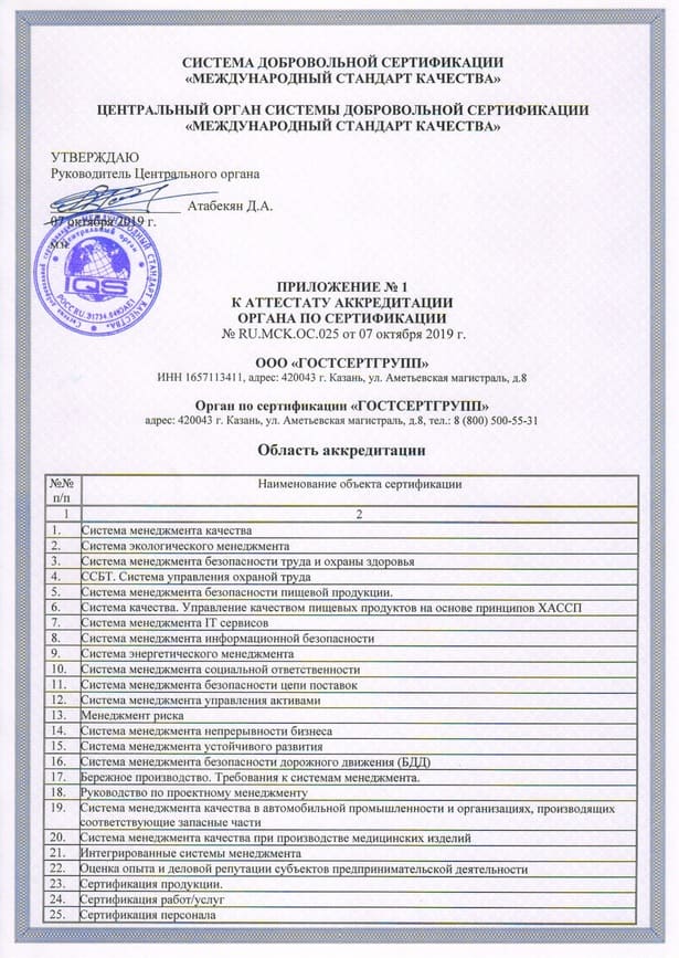 ГОСТСЕРТГРУПП – компания по сертификации товаров и услуг с большим территориальным охватом: насчитывает более 70 офисов по России, в том числе имеет представительство в Казани; ведет сотрудничество с 40 лабораториями, что гарантирует сокращенные сроки на производство измерений. Возможно проведение сертификации товаров в Китае.